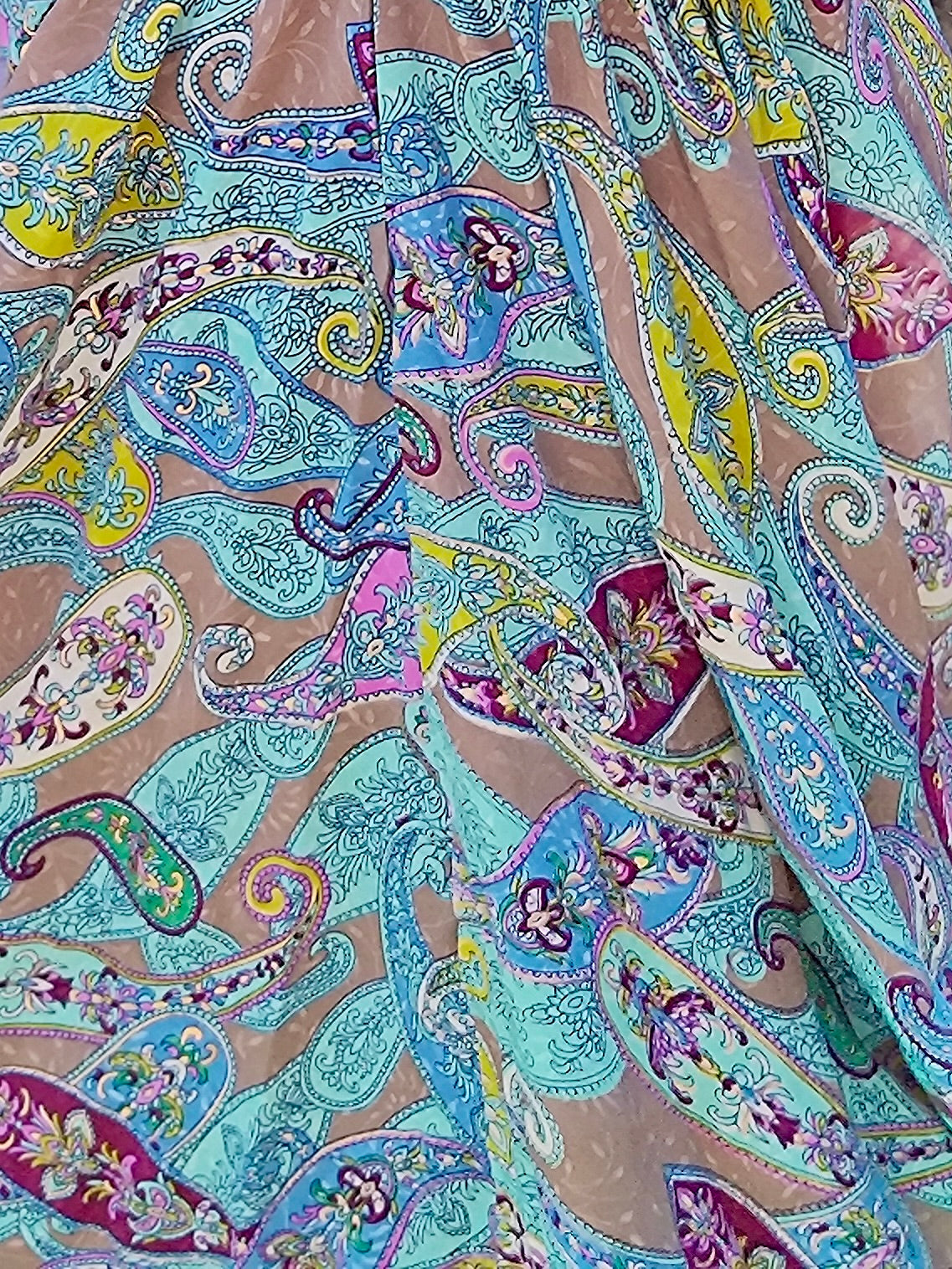 This dress is made from cotton material, very light, natural fabric. It is very durable, the colour and fabric are long lasting. Please handle it with care, hand wash in cold water is highly recommended to keep the dress as new for years to come.